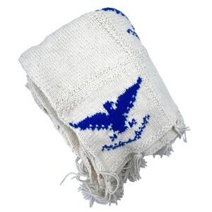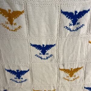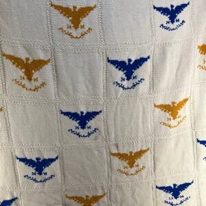 Vintage Handmade Ivory Crochet Blanket Eagle Emblem Motif Throw