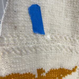 Preowned in good overall condition. Flaws include small hole denoted with blue tape. Selling this as is for upcycling projects like cardigans and blanket coats.
