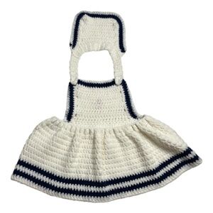 Vintage Handmade Knit Crochet Baby Sailor Dress Outfit Anchor White Blue Red
