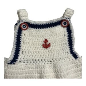 Vintage Handmade Knit Crochet Baby Sailor Dress Outfit Anchor White Blue Red Vin