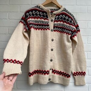 Vintage Handmade Knit Fair Isle Norway Sweater Cardigan
