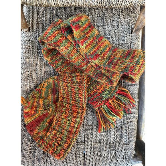 Vintage Handmade Knit Hat + Scarf Set – Autumn Multi