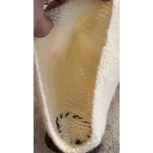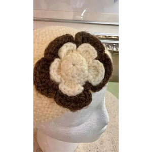 Vintage Handmade Knit Yarn Wool Kids Girls Hat Cream Flower