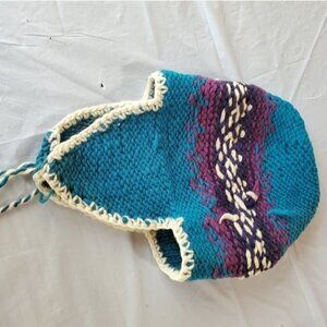 Vintage Handmade Knitted Hat with Ear Flaps and Tassels