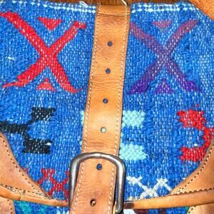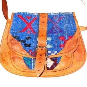 Handmade leather kilim crossbody purse = colorful, bright, boho, western. This purse is in excellent preowned condition with no rips, holes, or stains. Please see images for details and measurements.