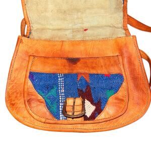 Vintage Handmade Leather Kilim Crossbody Purse Western Boho Festival