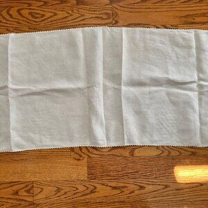 Vintage Handmade Linen Table Runner With Crochet Lace Tassel Trim