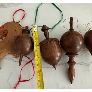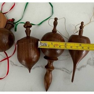 Vintage Handmade Lot of 6 Christmas Ornaments MCM Wooden Hollow Globe Finial