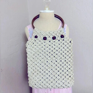 Vintage Handmade Macramé Purse with Wood Handles. This vintage, handmade purse is an excellent condition and is very sturdy. One small ding on one of the wood handles but barely noticeable. Cute bead detail around the top of the purse. The ultimate statement piece for summer! Smoke & pet free home. Bundle to save - I have lots of vintage items!