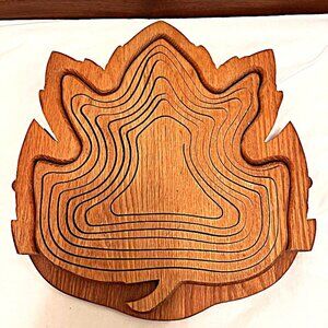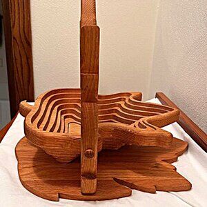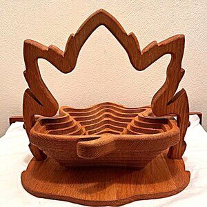 Vintage Handmade Maple Leaf shape Collapsible Wooden Bowl Basket Farmhouse Decor