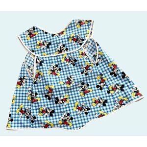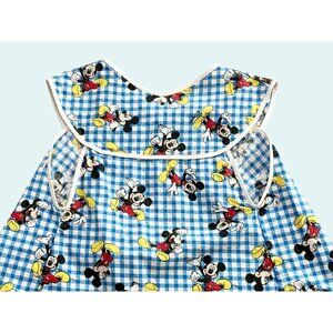 Adorable vintage / handmade Disney smock / apron. Circa 80s. Blue and white checkered pattern with Mickey Mouse allover. Open back with tie. Pre-owned and gently worn in really nice condition!