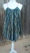 very simple style, one size fits most, highly adjustable. cute trapeze style top with pink satin ribbon straps. very full. vintage wallpaper print fabric, medium weight, forest green background with rows of flowers and dots. can be worn as a longer tunic style top, or a very short mini dress for the brave. total length 24-25 in. total circumference at hem is 80 in.