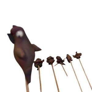 Vintage Handmade Mid-Century Clay Pottery Cocktail Appetizer Picks, Set Of 7