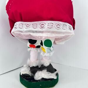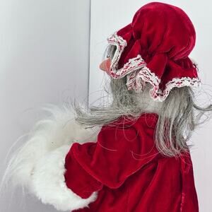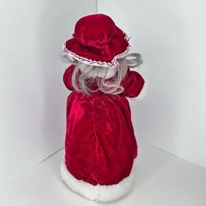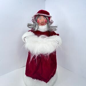 Vintage Handmade Mrs Claus Doll Papier Mache Face Red Velvet Dress