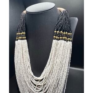 Vintage Handmade Multistring White and black Beaded Statement Necklace