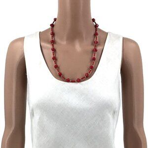 Vintage Handmade Necklace Red Silver Tone Spacers 24 Inch Length