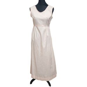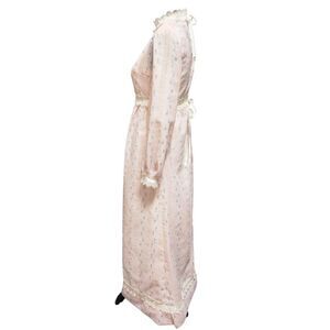 Vintage Handmade Nightgown Dress S Pink Floral Stripe Half Zip Lace Trim