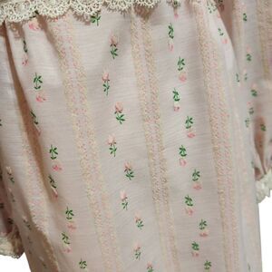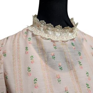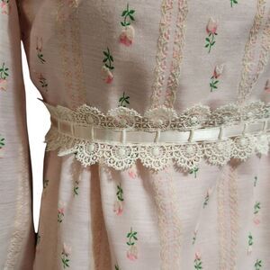 Vintage Handmade Nightgown Dress Small Pink Floral Stripe Half Zip Lace Trim