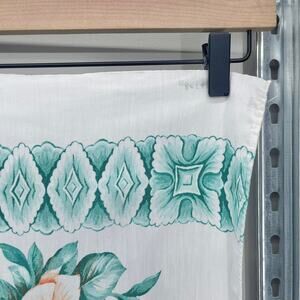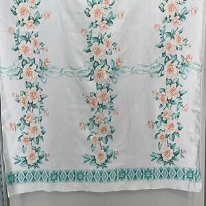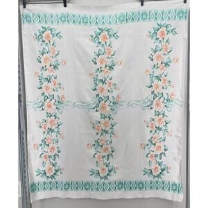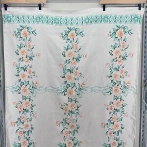 Vintage Handmade Orange Teal White Floral Slick Fabric Dining Table Tablecloth