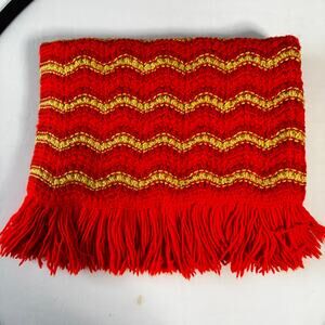 Vintage Handmade Orange & Yellow Striped Popcorn Crochet Throw Blanket