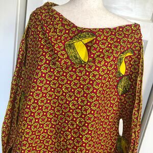 Keywords: Geometric, Boho, Tunic, 1970s, Bohemian, Unique, Geometric Pattern, Fruit, Ethnic Print, Artisanal, Eclectic, Wearable Art, Artsy, Art Teacher, Festival, Avant Garde