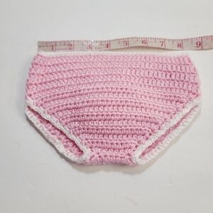 Pre-owned vintage unbranded handmade pink and white crochet baby bloomers