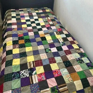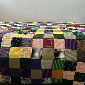 Vintage Handmade Patchwork Quilt Thick Blanket Twin Coverlet