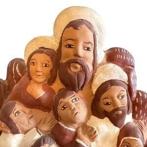 Vintage Handmade Peruvian Clay Statue Figurine Jesus Storyteller Folk Art
