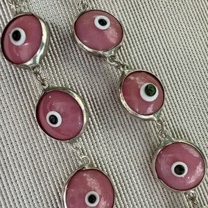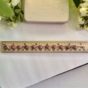 ➡️ Vintage Handmade Pink Evil Eye Bracelet in Solid 925 Sterling Silver. It’s about 7”-7.25”. Great condition. Each eye is about 10mm and bezel set. Handmade evil eye glass beads. I own one like this in another color and I absolutely love it!