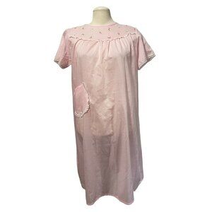 Vintage Handmade Pink Floral Embroidered Wrap Night Gown Robe Sz S/M Womens Shor