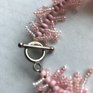 Vintage Handmade Pink Fringe Sterling Silver Toggle Clasp Bracelet Approx 7 in