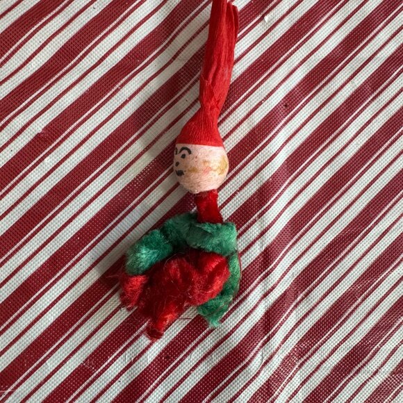 Vintage Handmade Pipe Cleaner Santa Claus Tassel Ornament 1960's