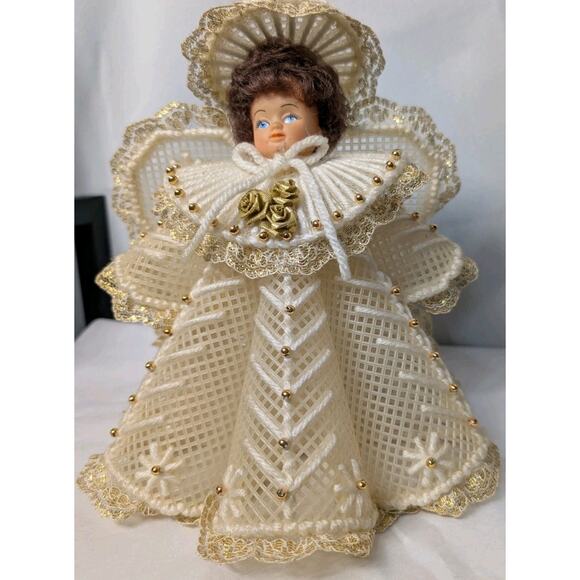 Vintage Handmade Plastic Canvas Angel Christmas Decor 1960's