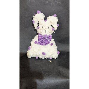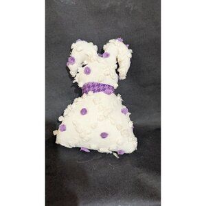Vintage Handmade Polka Dot Bunny Doll Stuffed Animal White & Purple 9" Tall