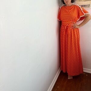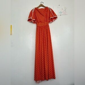 There are some spots (pictured) and part of the hem is loose in the bottom of the dress.