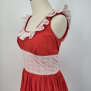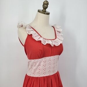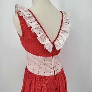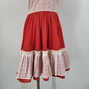 Vintage Handmade Prairie Dress Ruffled Polka Dot Red White Small