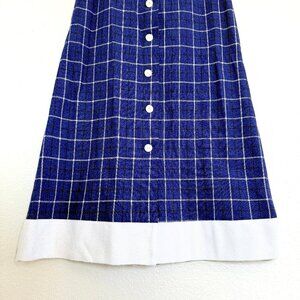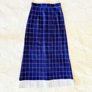 Vintage Handmade Preppy Nautical Wool Navy Blue Plaid Maxi Skirt Size S