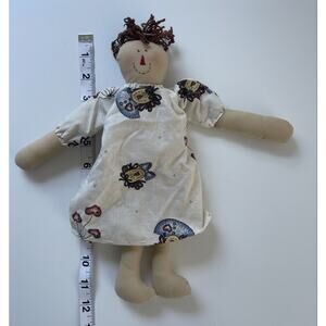 Vintage Handmade Primitive Style Cloth Rag Doll Folk Art Inscribed 12”
