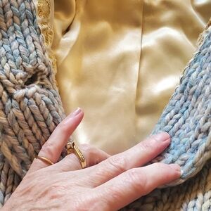 Vintage Handmade Pure Wool Blue Lined Heavy Knit Button-Down Sz. XL Coat