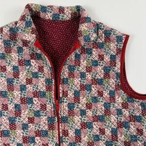 Vintage Handmade Quilted Cottage Grandma Red Quilt Vest W/ Pockets Size Small