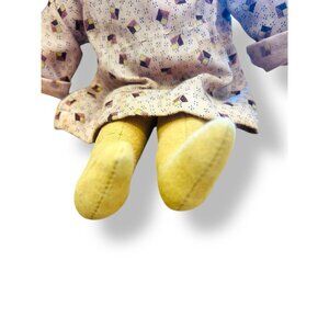 Color: Yellow with black yarn hair and multicolor patterned dress