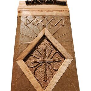 Vintage Handmade Rattan Address Book With Leaf Design & Twine Binding Boho Cotta