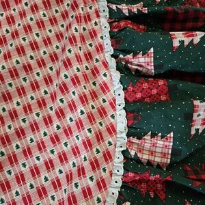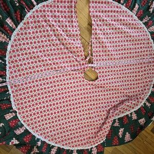 Vintage Handmade Red Green Lace Round Christmas Tree Skirt