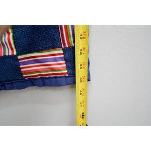 Vintage Handmade Red and Blue With Striped Backing 45X46 Inch Handmade Lap or Small Child Size Quilt This quilt had been laundered in large commercial machines to ensure that it has been cleaned and sanitized.