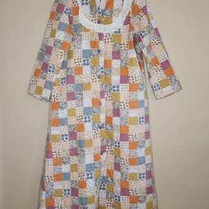 This casual robe features a charming scoop neck and long sleeves, perfect for lounging in style. The multi color scheme adds a touch of whimsy to its comfortable design, making it an ideal choice for intimate and sleepwear occasions. handmade quilted patchwork