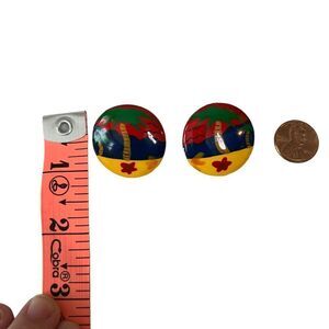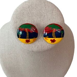 Vintage Handmade Round Beach Palm Tree Post Back Earrings