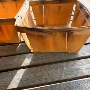 This vintage handmade rustic wooden berry basket carrier adds a touch of farmhouse charm to any decor. Perfect for displaying or storing items, it features four compartments and a sturdy handle for easy carrying.