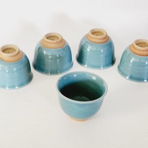 Vintage Handmade Sake Cup Japanese Ceramic Tea Cup Set of Five
