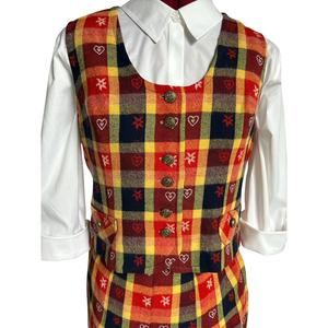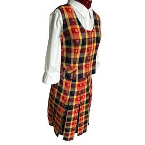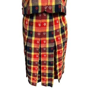 Vintage Handmade Set Size 8-10 Wool Blend Tartan Pleated Skirt & Matching Vest