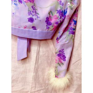 Vintage Handmade Sewn Feather Collar Crop Top Pink Floral Tie Go Go Lavender Mod